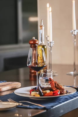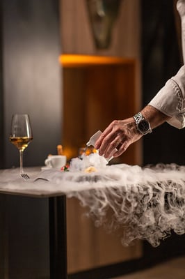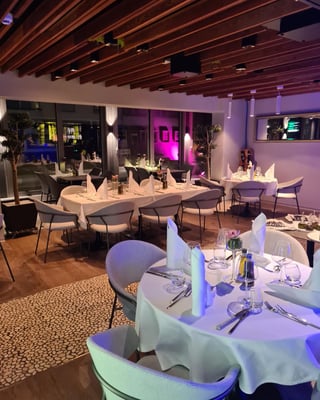 zeitlos elegant eingerichtet, empfängt das gastro-team seine besucher in einem modernen, schlichten und zugleich edlen ambiente. das restaurant ist mit seinen tischen, einer wein-lounge und dank eines imposanten aquariums nicht nur in verschiedene zonen unterteilt. es überrascht den gast auch mit einer gelungenen kombination aus wohn- & lifestyle-komponenten.