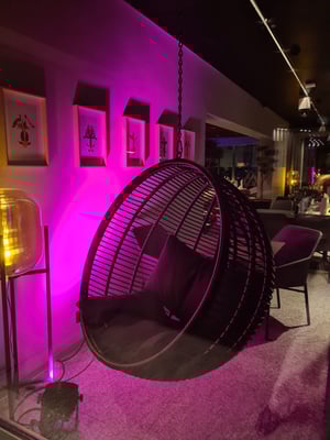 so bietet sich dem besucher neben stilvoll eingedeckten tischen eine kleine, gemütliche sitzecke vor dem elektrischen kamin oder aber ein hängestuhl, in dem es sich mit einem guten buch gemütlich verweilen lässt. noch ein gutes glas wein oder eine feine kaffee-kreation dazu serviert, und einem perfekten wohlfühl-genussmoment steht nichts mehr im wege, während der alltag draussen vor der verglasten restaurantfront an einem vorüberzieht. www.mounge.ch