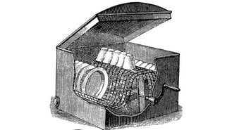 denn die enkeltochter von niemand geringerem als dem erfinder der dampfmaschine john fitch, liebte es, rauschende feste zu feiern, bei denen aber jedes mal im nachgang unmengen an verdreckten geschirr von einer ganzen schar an küchengehilfen gereinigt und wieder auf hochglanz poliert werden mussten. und die frau eines politikers ärgerte sich ausserdem immer über alle massen darüber, dass bei dieser manuellen reinigung durch das personal regelmässig wertvolles geschirr zu bruch ging.