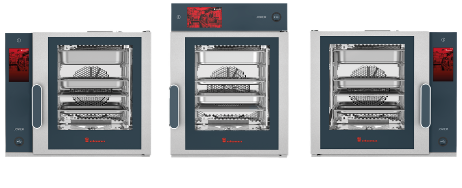der eloma joker ist ein kompakter kombidämpfer, der trotz seiner geringen breite von nur rund 52 cm alle funktionen eines grossen geräts bietet. entwickelt nach dem motto „think big, cook small“ vereint er modernste technologie, modulare konfiguration und hervorragende energieeffizienz in einem gerät, das sich jedem küchenkonzept anpasst.