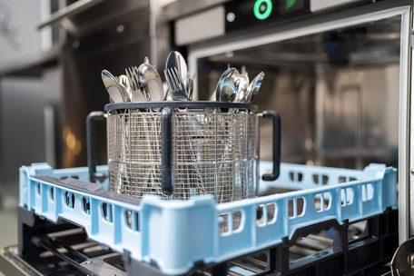 les appareils sont parfaitement coordonnés pour laver hygiéniquement et impeccablement les verres et les couverts en un seul cycle. cela permet non seulement de gagner du temps, mais aussi d'améliorer l'aspect général et la perception dans le secteur de la restauration, où les détails comptent particulièrement.