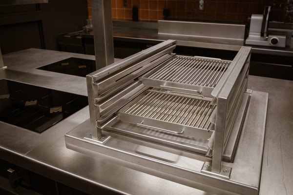 dank seines sonderbau-ansatzes bietet marrone die möglichkeit die unterschiedlichsten robata, satay oder yakitori kochfunktionen, entsprechend den vorhandenen räumlichkeiten, zu integrieren. diese geräte funktionieren mit kohle oder pressholz und eignen sich besonders zum kochen / grillieren verschiedenster speisen, wie rindfleisch, lamm, huhn, fisch oder gemüse. alle drei varianten sind mit einer schamottverkleidung ausgestattet, welche eine hohe thermische effizienz garantiert und dazu ein typisches „räucher“-aroma erzeugt. die robata kochfunktionen sind mit einem balkensystem ausgestattet, welches die verwendung von spiessen mit unterschiedlichen längen erlaubt.