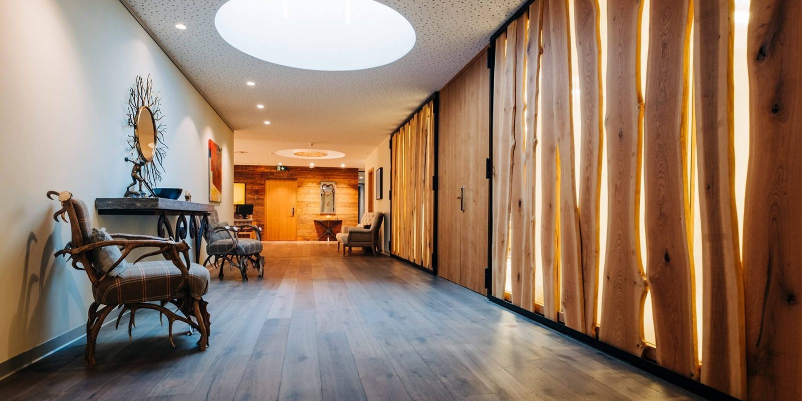 inspiriert von der puren reinheit der natur, greifen in dem luxushotel in saas-fee elegant holzvertäfelte wände, gemütlicher tweed und badezimmer ganz aus naturstein gefertigt die farben und texturen der alpine natur auf. das glühende kaminfeuer spiegelt sich in den kristallenen lampen und erinnert die gäste an die schimmernden gletscher, eingerahmt in die raumhohen fenster des luxus-hotels mit seinem unverwechselbaren chalet-wohlfühlambiente.