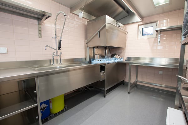 im weiteren verlauf der küche wurde das stewarding, also der bereich der spülküche, geplant und umgesetzt. hier findet sich eine leistungsstarke doppelkorbmaschine, modell profi aupt, des spülprofis hobart. mit ihr kann geschirr sowie jegliche arten von ustensilien hygienisch einwandfrei und strahlend sauber bei gleichzeitig minimalem wasser-, chemie- und energieverbrauch gereinigt werden. ergänzt wird die abteilung mit einer besteckpoliermaschine. in einer zweiten projektphase wird in einem separaten, der küche angeschlossenen, bereich noch eine patisserie produktion von der gemmet handels ag installiert werden.
